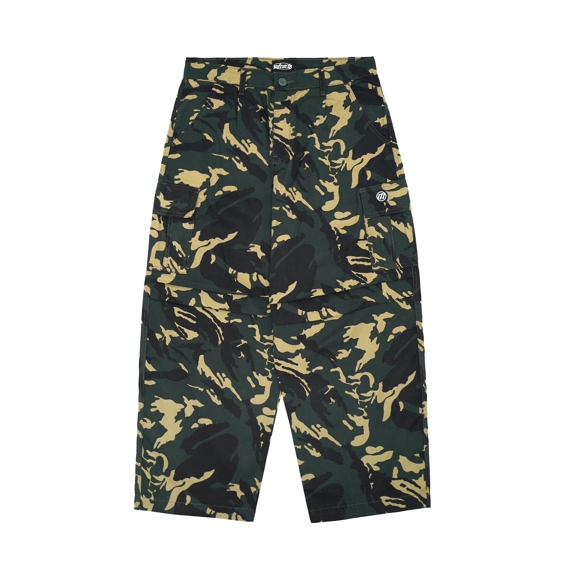 Mischen Baggy cargo pants from Miracle Mates designed with a loose silhouette that feels comfortable yet stylish for everyday wear. Made from thick camouflage twill fabric that is durable while staying breathable during use. Equipped with six functional pockets to support daily activity, enhanced with premium details such as a signature rubber patch on the cargo pocket and hidden button closures on the back and cargo pockets for safer storage. A signature Miracle label at the back adds brand identity, while adjustable ankle laces let you customize the fit wear it loose or tapered depending on your style. A versatile piece suitable for streetwear, casual outfits, and outdoor looks.